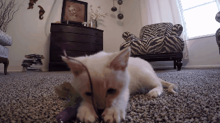 The cat, now named Lazarus, lives with the family who discovered and rescued him on Thanksgiving morning. A new YouTube video shows Lazarus' incredible transformation from an animal near death to a frisky little feline, playfully swiping feathers and chasing older (and not particularly amused) cats.